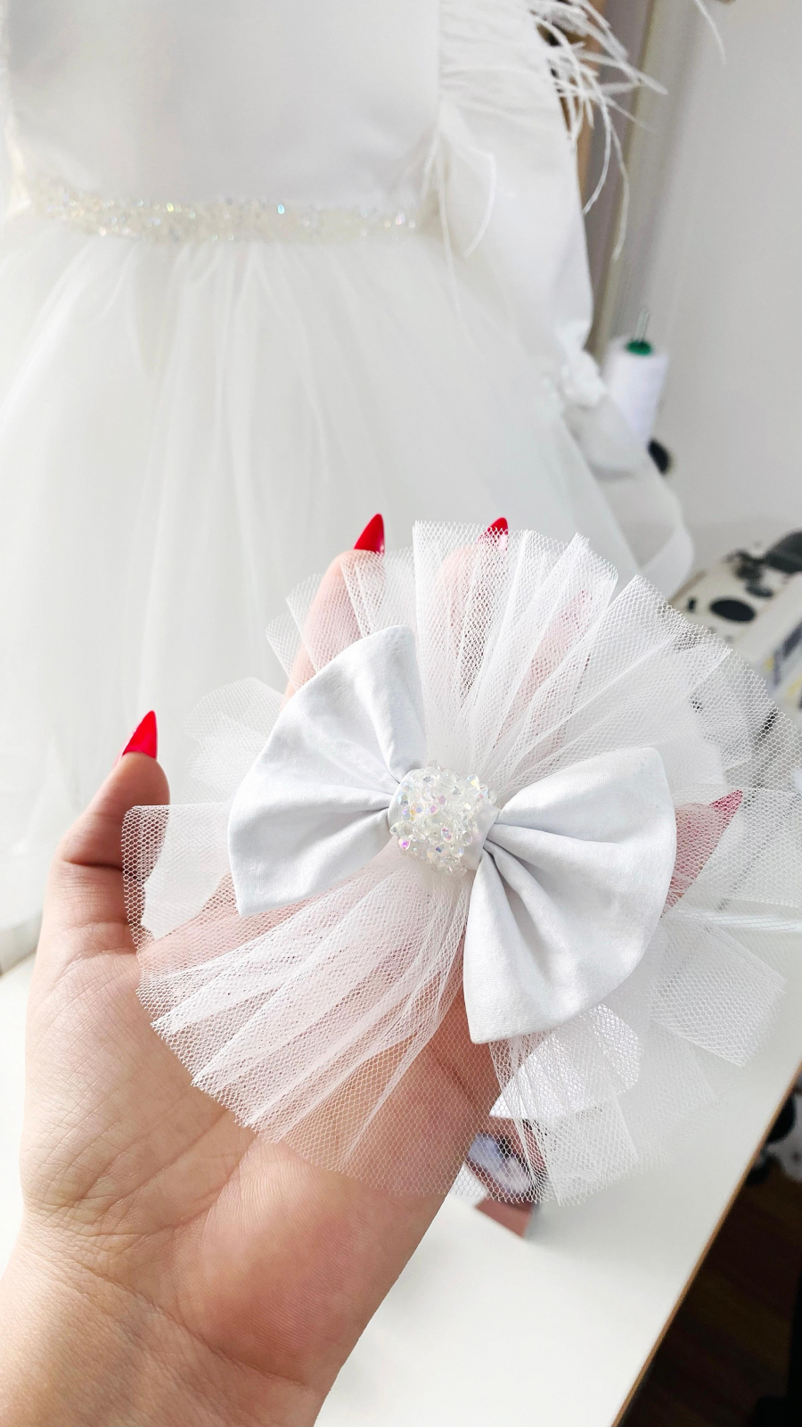 Compozitie: tulle premium, pene de strut, matasica, cristale