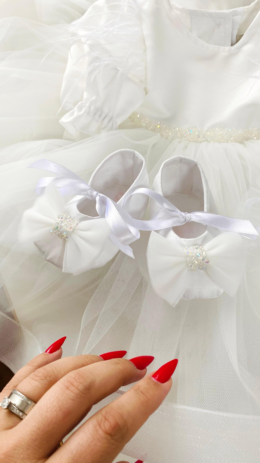 Botoseii si bentita sunt si ele accesorizate cu fundite din tulle si decorate cu mici cristale.