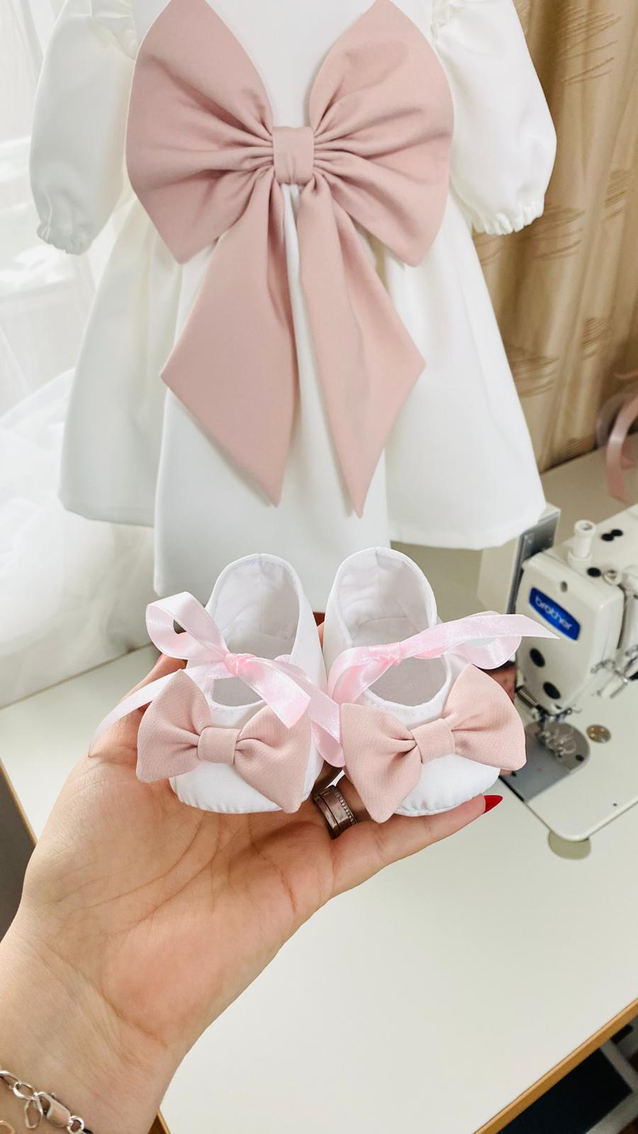 La comanda, botoseii se pot broda pe talpa cu numele fetitei si cu data botezului - cost suplimentar 20 lei.