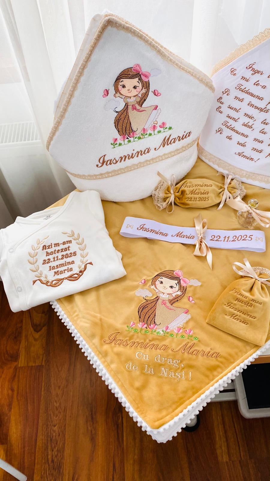 - fasa lungime de 100 cm brodata cu numele copilului si data botezului;
